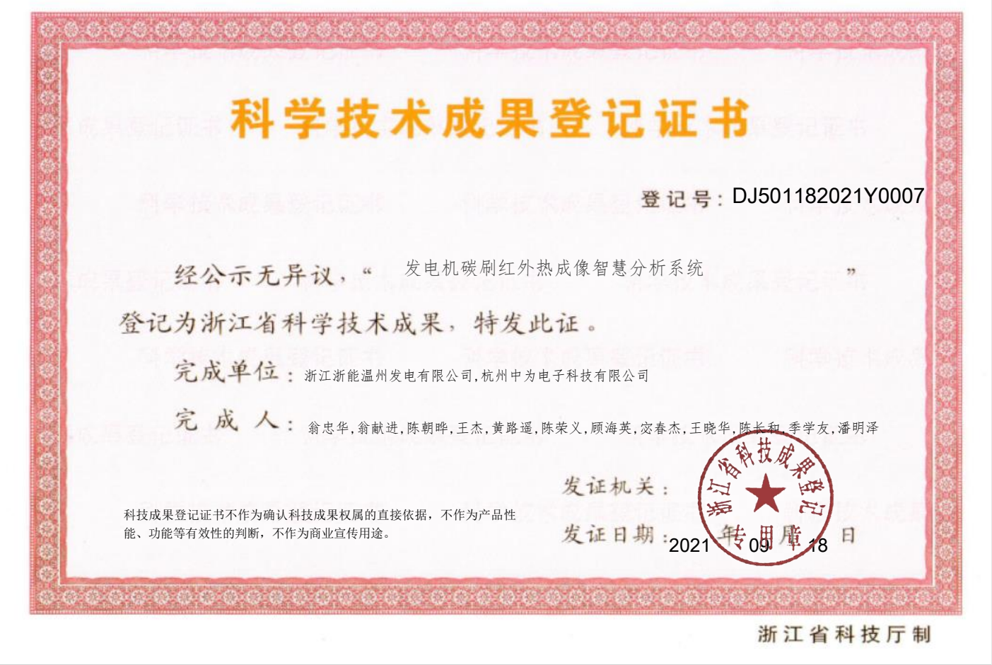 紅外熱成像監(jiān)測(cè)系統(tǒng)通過(guò)浙江省科學(xué)技術(shù)成果鑒定,并于官網(wǎng)公示完成。