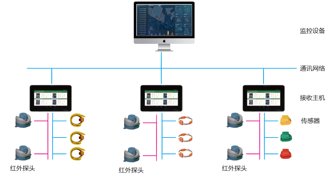 無線溫度監(jiān)測系統(tǒng)具有極高的可靠性和安全性,可直接安裝到每臺高壓開關(guān)、母線接頭、戶外刀閘、變壓器等容易產(chǎn)生高溫的電氣接點處。系統(tǒng)配備標(biāo)準(zhǔn)通訊接口,可聯(lián)網(wǎng)運行。通過上位機軟件,可記錄高壓設(shè)備實時運行溫度的數(shù)據(jù)。為高壓設(shè)備的維修提供歷史數(shù)據(jù),實現(xiàn)了高壓設(shè)備熱故障預(yù)知維護。