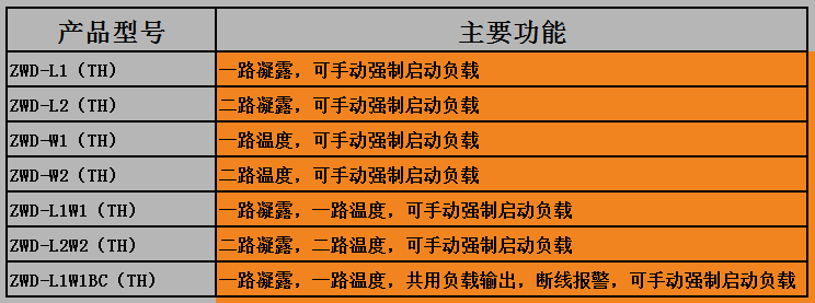4.除凝露型:當測量濕度值大于88%RH時,啟動除凝露負載,當測量濕度小于75%RH時,關(guān)閉除凝露負載。