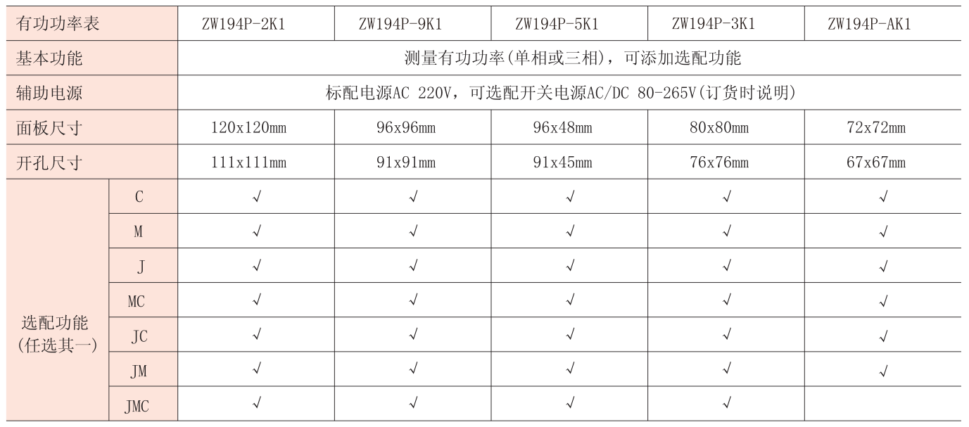 注:“√”代表可選配置,“J”代表報(bào)警輸出,“M”代表模擬量輸出,“K”代表開(kāi)關(guān)量輸入,“C”代表