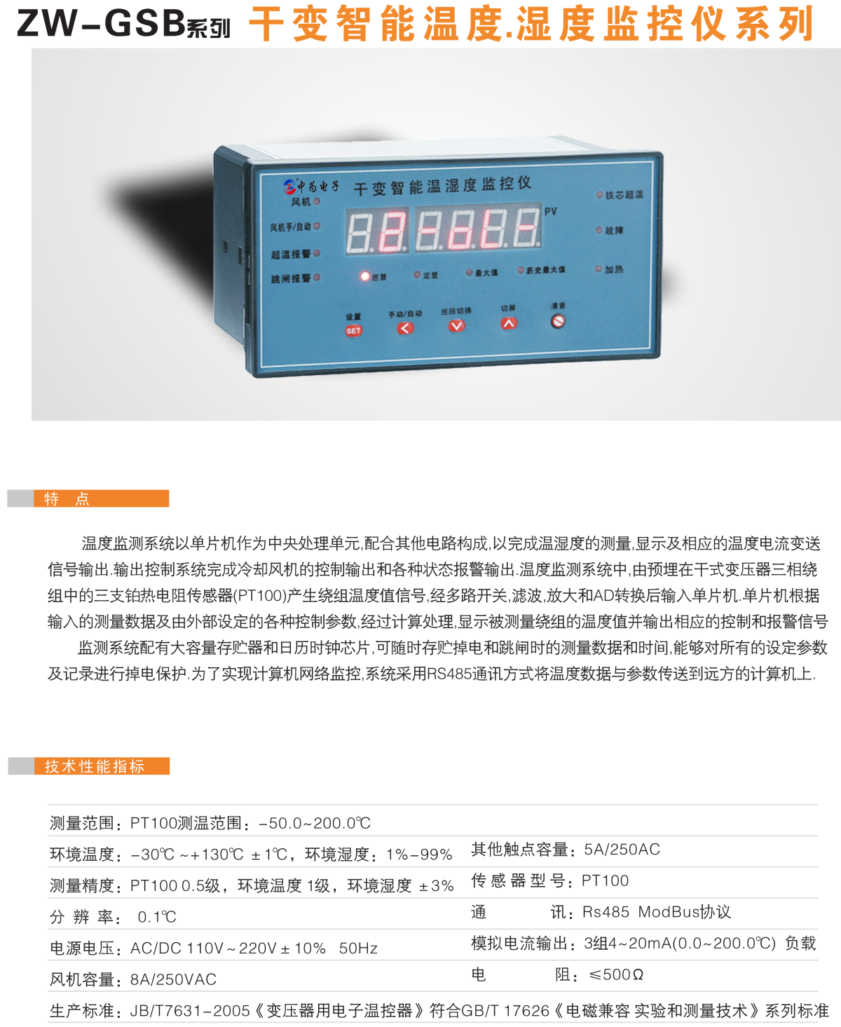ZW-GSB(TH)干變智能溫濕度監(jiān)控儀