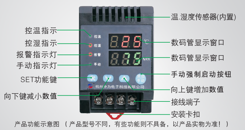 本產(chǎn)品具有測量誤差小、控制精度高、顯示清晰明了、大方得體的優(yōu)點(diǎn),可廣泛應(yīng)用于各種需要高精度控溫及控濕場合。采用傳感器內(nèi)置,不需要外接傳感器,對同一環(huán)境溫度、濕度進(jìn)行實(shí)時(shí)監(jiān)控,數(shù)碼管顯示設(shè)定值和測量值。根據(jù)預(yù)設(shè)控制值,自動或手動強(qiáng)制啟動控制負(fù)載為調(diào)節(jié)環(huán)境的溫度和濕度。