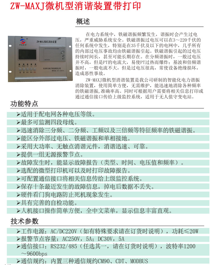 ZW-MAXJ微機(jī)型消諧裝置帶打印