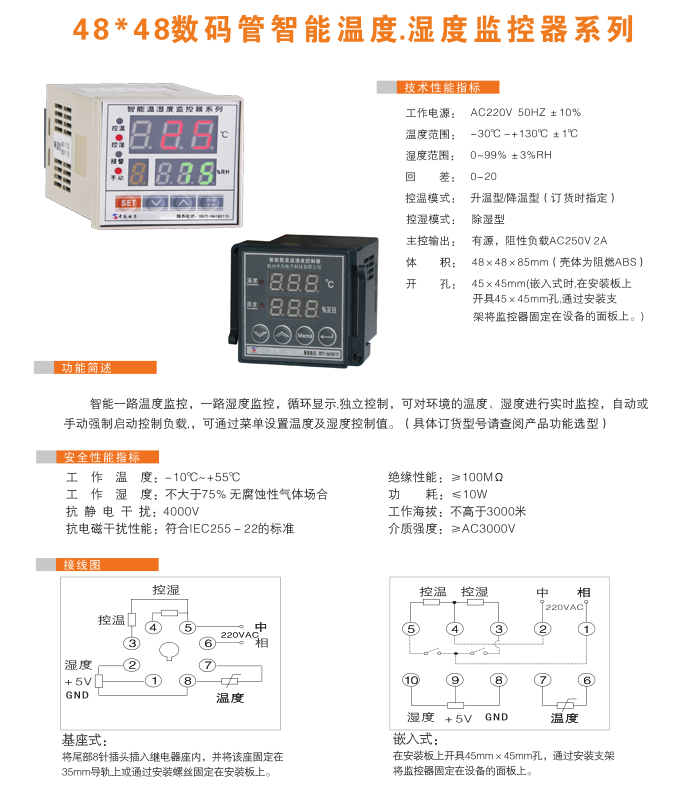 4.除凝露型:當(dāng)測量濕度值大于88%RH時,啟動除凝露負(fù)載,當(dāng)測量濕度小